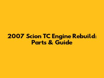 2007 Scion TC Engine Rebuild: Parts & Guide