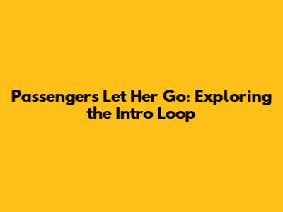 In conclusion, the intro loop of Passenger's "Let Her Go" is a testament to the power of simplicity and repetition in music. It's a masterclass in creating atmosphere, setting the emotional stage, and capturing the listener's attention. The intro's delicate instrumentation, melancholic melody, and subtle harmonies all contribute to its overall impact. By understanding the elements that make up this intro loop, you can gain a greater appreciation for Passenger's artistry and the song's enduring appeal.