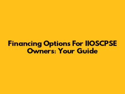 Financing Options For IIOSCPSE Owners: Your Guide