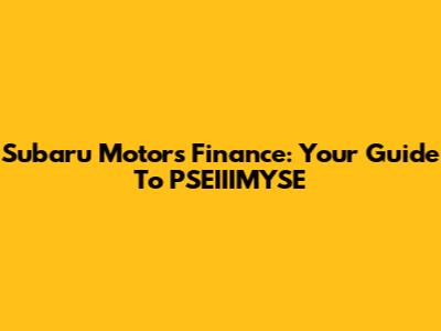 Subaru Motors Finance: Your Guide To PSEIIIMYSE