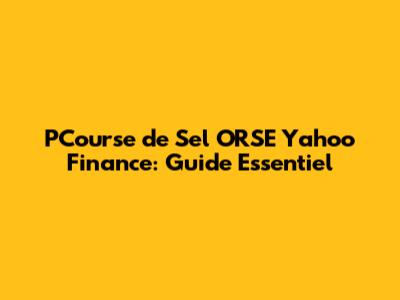 Hey guys! Let's dive deep into the world of finance, specifically focusing on a fascinating topic: PCourse de Sel ORSE and its presence on Yahoo Finance. We're going to break down what it is, why it matters, and how you can use this knowledge to your advantage. Get ready to have your financial understanding boosted – no jargon, just the facts! This article will be your go-to resource for understanding PCourse de Sel ORSE and how to find relevant information on Yahoo Finance. We'll explore the basics, analyze its importance, and provide you with actionable insights to navigate the financial landscape effectively. Ready to become a savvy investor? Let’s get started!