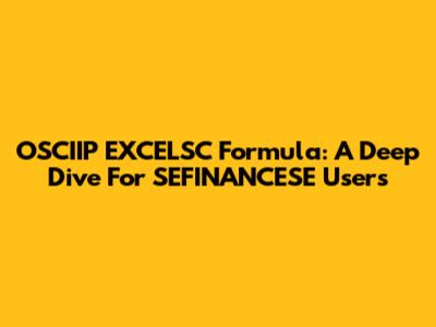 OSCIIP EXCELSC Formula: A Deep Dive For SEFINANCESE Users