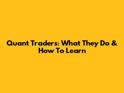 Quant Traders: What They Do & How To Learn