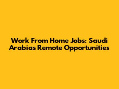 Work From Home Jobs: Saudi Arabia's Remote Opportunities