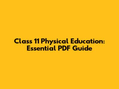 Class 11 Physical Education: Essential PDF Guide