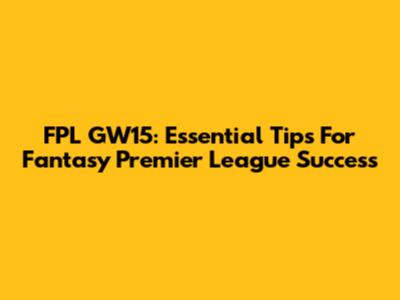 FPL GW15: Essential Tips For Fantasy Premier League Success