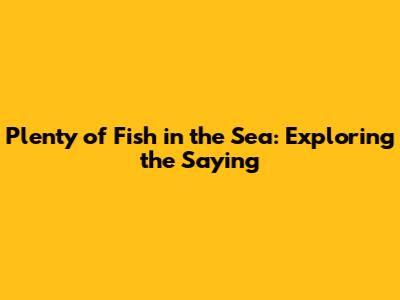 What Does "Plenty of Fish in the Sea" Really Mean?