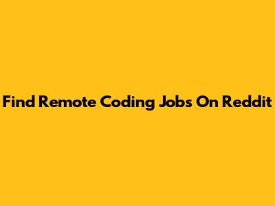 Find Remote Coding Jobs On Reddit