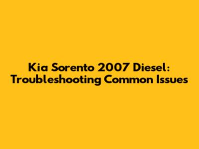 Kia Sorento 2007 Diesel: Troubleshooting Common Issues