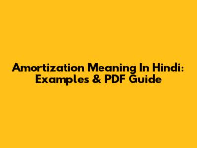 Amortization Meaning In Hindi: Examples & PDF Guide