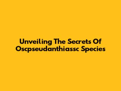 Unveiling The Secrets Of Oscpseudanthiassc Species