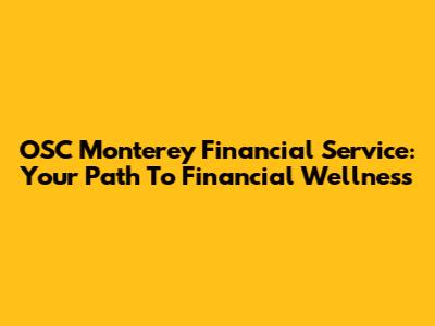 OSC Monterey Financial Service: Your Path To Financial Wellness