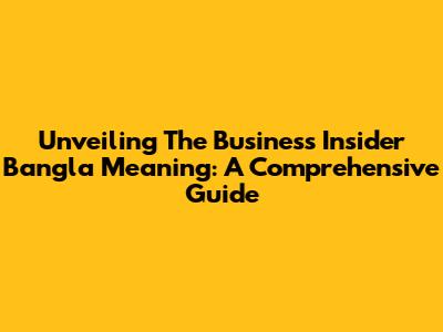 Unveiling The Business Insider Bangla Meaning: A Comprehensive Guide