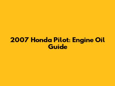 2007 Honda Pilot: Engine Oil Guide