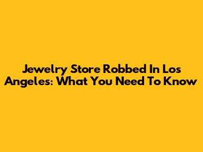 Jewelry Store Robbed In Los Angeles: What You Need To Know