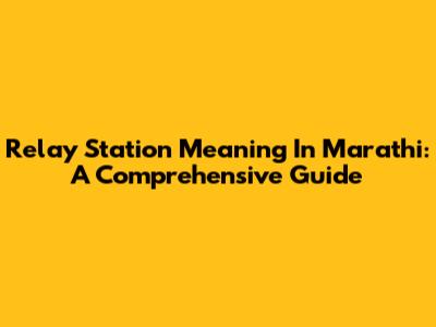 Relay Station Meaning In Marathi: A Comprehensive Guide
