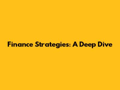 Finance Strategies: A Deep Dive