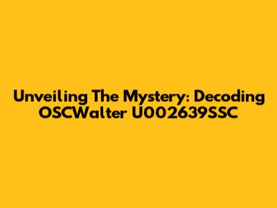 Unveiling The Mystery: Decoding OSCWalter U002639SSC