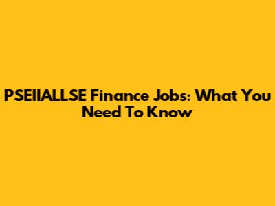 PSEIIALLSE Finance Jobs: What You Need To Know