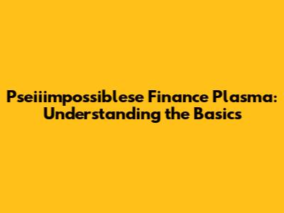 Let's dive into the world of pseiiimpossiblese finance plasma. I know, it sounds like something straight out of a sci-fi movie, but trust me, it's a concept that’s worth understanding. This article will break down the basics, making it easier for everyone—from finance newbies to seasoned investors—to grasp what it's all about. So, buckle up, guys, and let’s get started!