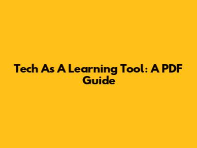 Tech As A Learning Tool: A PDF Guide