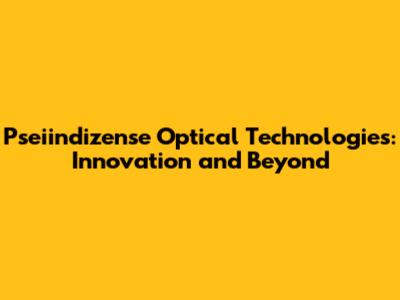 Pseiindizense Optical Technologies: A Deep Dive into Innovation