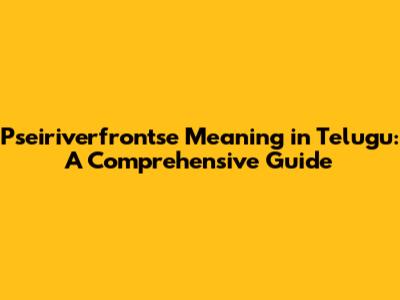 Hey guys! Ever stumbled upon a word or phrase in another language and felt totally lost? It happens to the best of us! Today, we're diving deep into the meaning of "pseiriverfrontse" in Telugu. Whether you're a language enthusiast, a student, or just plain curious, this guide is for you. We'll break down the word, explore its possible origins, and give you a clear understanding of what it means. So, let's get started and unravel this linguistic mystery together!