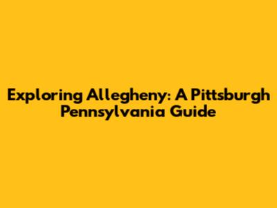 Exploring Allegheny: A Pittsburgh Pennsylvania Guide