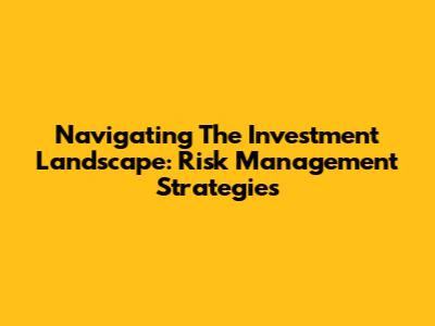 Navigating The Investment Landscape: Risk Management Strategies