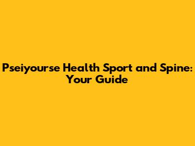 Understanding Pseiyourse Health Sport and Spine