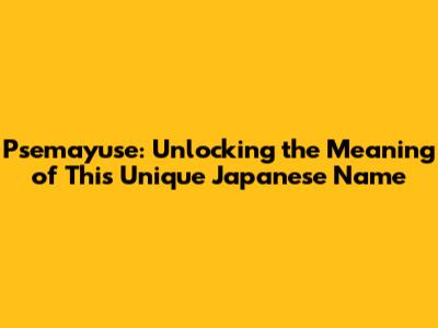 Decoding Psemayuse: A Journey into Japanese Name Meanings