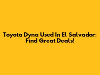 Toyota Dyna Used In El Salvador: Find Great Deals!