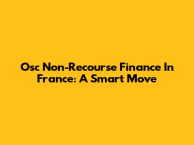 Osc Non-Recourse Finance In France: A Smart Move