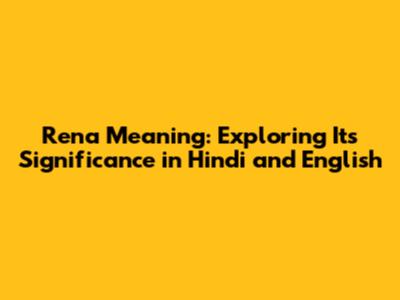 Decoding Rena: The Essence in Hindi