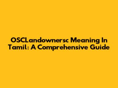 OSCLandownersc Meaning In Tamil: A Comprehensive Guide