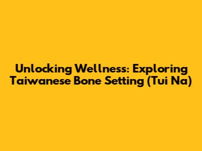 Unlocking Wellness: Exploring Taiwanese Bone Setting (Tui Na)