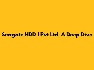 Seagate HDD I Pvt Ltd: A Deep Dive