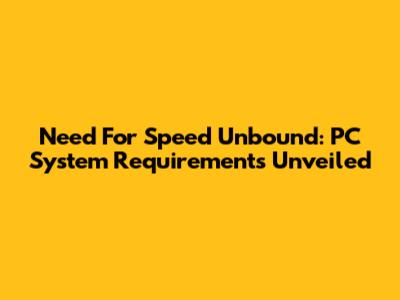 Need For Speed Unbound: PC System Requirements Unveiled