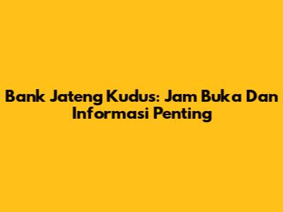 Bank Jateng Kudus: Jam Buka Dan Informasi Penting