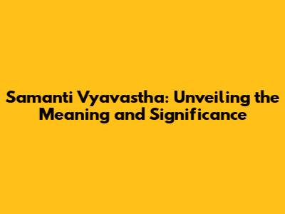 Decoding Samanti Vyavastha: The Core Concept