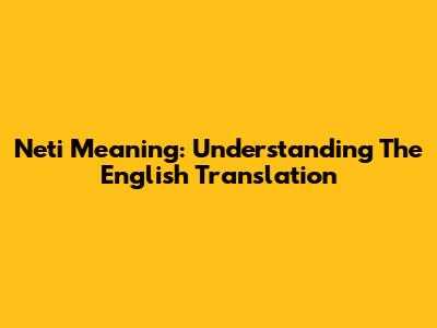 Neti Meaning: Understanding The English Translation