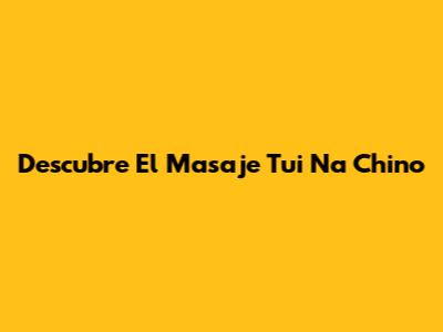 Descubre El Masaje Tui Na Chino