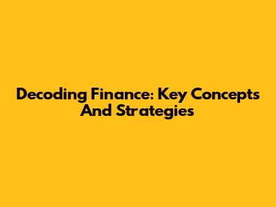 Decoding Finance: Key Concepts And Strategies