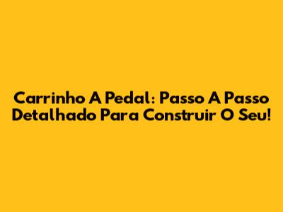 Carrinho A Pedal: Passo A Passo Detalhado Para Construir O Seu!
