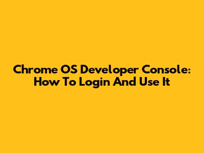 Chrome OS Developer Console: How To Login And Use It