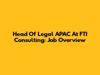 Head Of Legal APAC At FTI Consulting: Job Overview