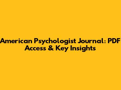 American Psychologist Journal: PDF Access & Key Insights