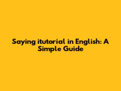 Hey guys! Ever wondered how to translate the word "itutorial" into English? Well, you're in the right place. Let's break it down and explore the best ways to convey the meaning of "itutorial" in English, ensuring your message is clear and effective.