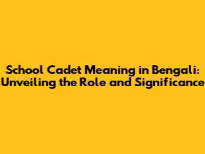 School Cadet Meaning in Bengali: Unveiling the Role and Significance
