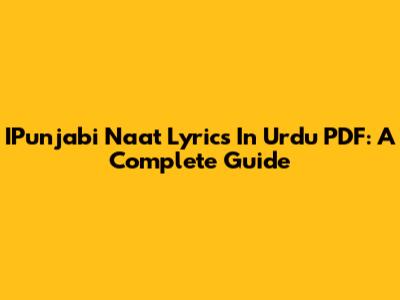IPunjabi Naat Lyrics In Urdu PDF: A Complete Guide